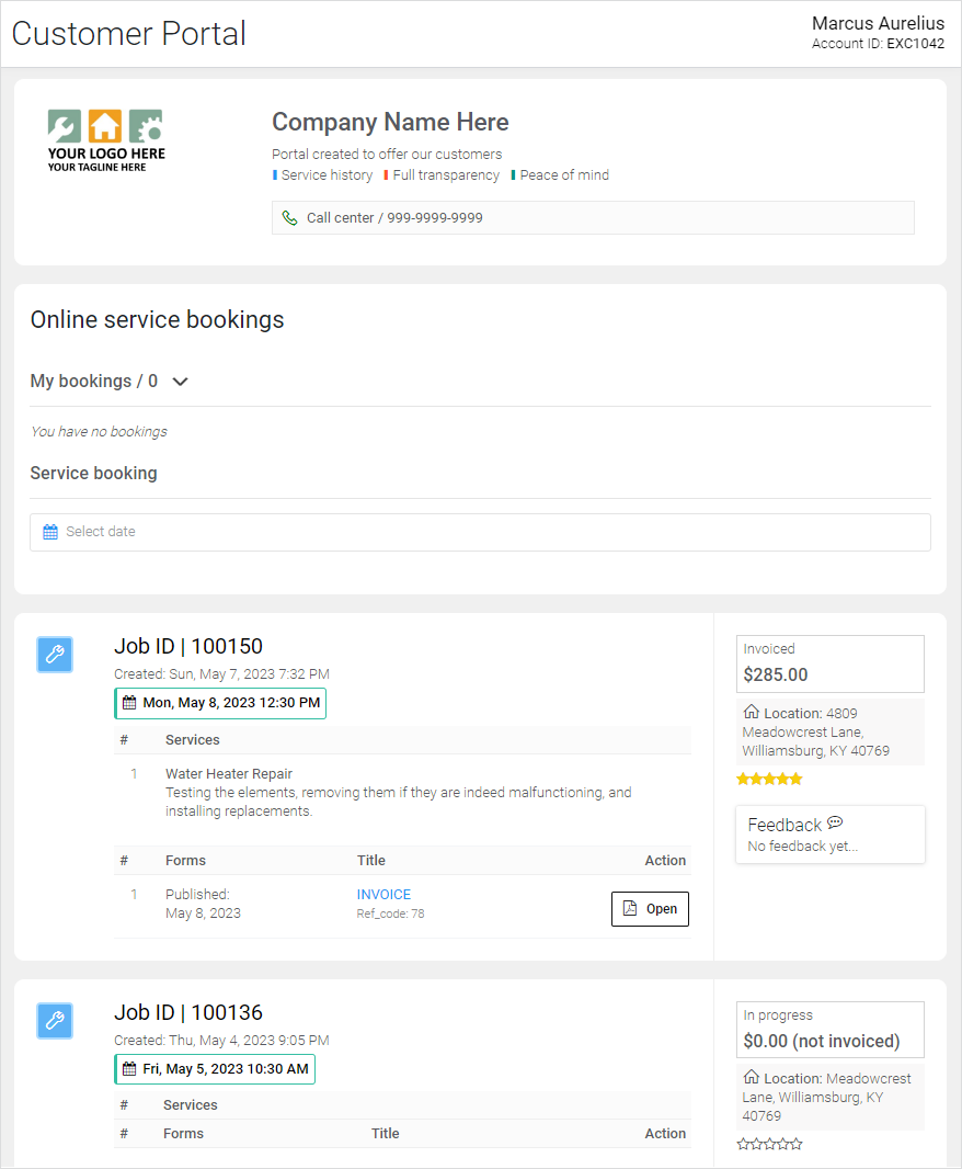 Would you like to have a history of your preferred service orders? We think you do! And we think your customers do, too! You can send invitations to any of your customers to get access to Customer Portal where, among other things, he or she will be able to see all jobs.