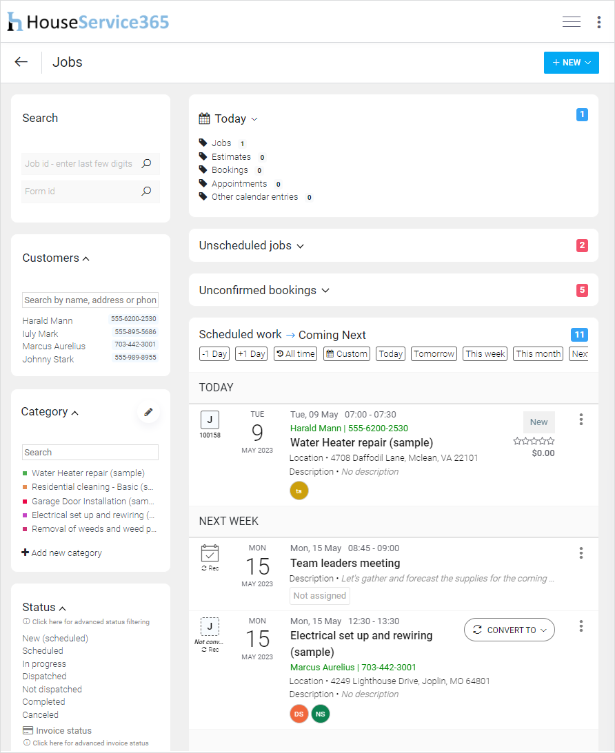 HouseService 365 has a built-in Recurring Plans management system that aims to simplify the definition and tracking of recurring jobs. Once you've assigned and scheduled a plan for a customer, you'll receive calendar notifications for any occurrences, and each calendar occurrence can be converted into a job with a single click. Nevertheless, each occurrence can be updated according to the customer’s needs.